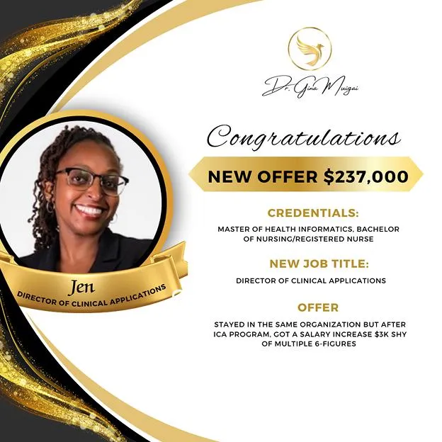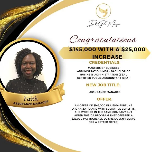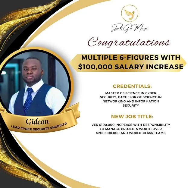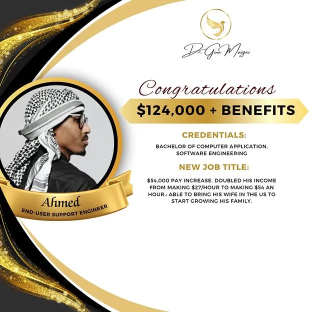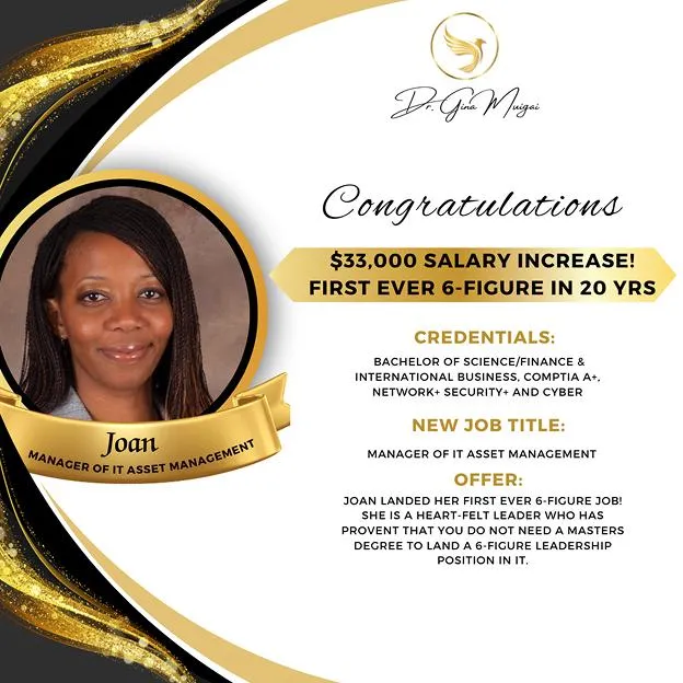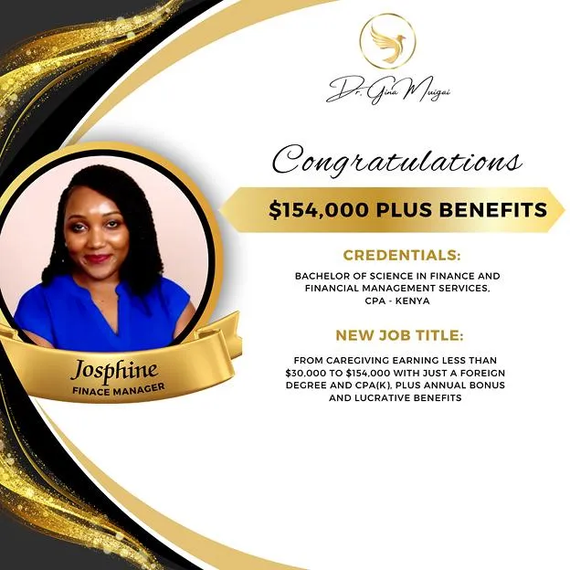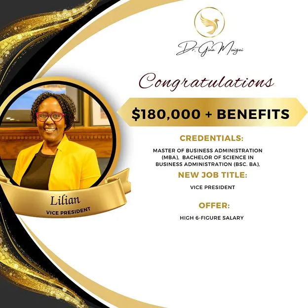I’m Dr. Gina Muigai—Your 6-figure career strategist, the Top immigrant success coach, and trusted advisor to high-performing professionals ready for their next level.